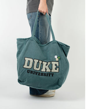 Le sac University a la forme d'un cabas. Les anses sont assez larges pour pouvoir le porter confortablement à l'épaule et il y a une fermeture éclair qui permet de cacher le contenu de votre sac. Des inscriptions à inspiration université américaine sont présentes ainsi que les badges : symboles de la marque.
