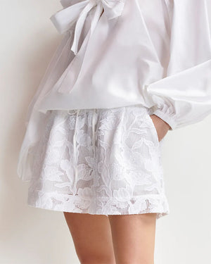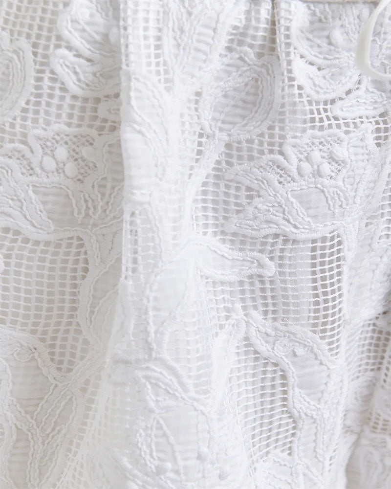 Ce short en effet dentelle blanche est la pièce parfaite pour apporter une touche de fraîcheur et de féminité à votre look. Léger, confortable et élégant, il se porte aussi bien en journée avec un débardeur fluide qu’en soirée avec un chemisier structuré. À glisser sans hésiter dans votre valise de vacances !