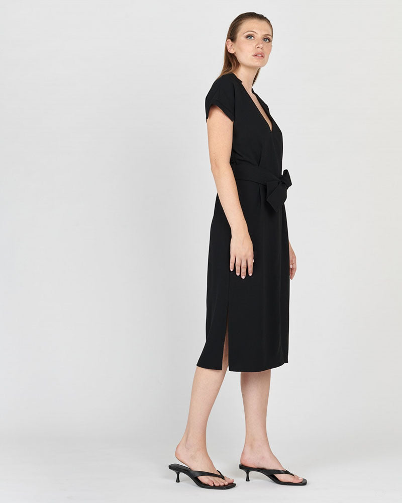 Une robe en polyester noire pour femme de la marque Hana San. Une robe noire raffinée et classique qui sera parfaite pour un look chic. A porter en toutes occasions pour vos soirées chics ou vos look du quotidien.