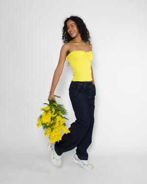 Un top en maille jaune de chez Essentiel Antwerp parfait pour cette saison d'été ! Avec un short en jean bleu ou un pantalon fluide, vous serez au top de la tendance. Retrouvez toute la collection Essentiel ici !
