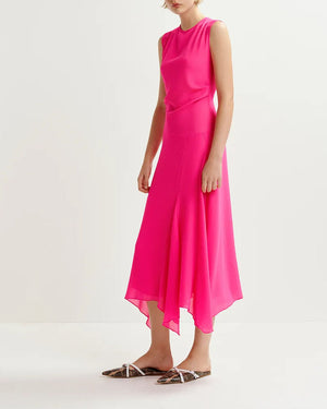 Une robe rose sans manches pour femme de chez Essentiel Antwerp, parfaite pour cette saison. On adore la couleur qui ajoute une touche de peps à la tenue.