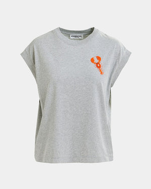 Un t-shirt gris brodé d'un homard rouge de chez Essentiel Antwerp parfait pour cette saison d'été ! Avec un short en jean bleu ou un pantalon fluide, vous serez au top de la tendance. On adore sa broderie homard sur la poitrine. Retrouvez toute la collection Essentiel ici !