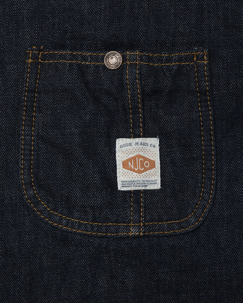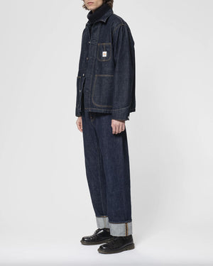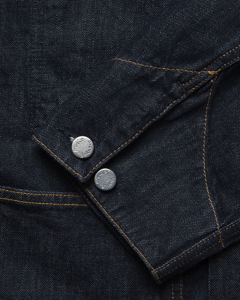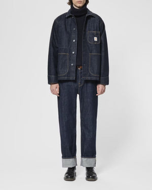 Une veste en denim brut pour homme et de la marque Nudie. Cette veste en coton a une coupe oversize très tendance et une couleur denim indémodable. C'est la veste en denim pour homme parfaite !