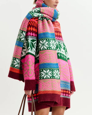 Écharpe en maille jacquard / Motif multicolore audacieux / Dimensions 230 x 38,5 cm / Bords côtelés