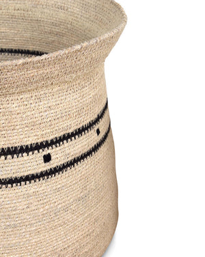 Set de deux paniers en jonc de mer avec petites broderies de couleur noire confectionnées artisanalement de la marque Opjet. Pratique pour le rangement et la décoration !