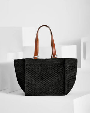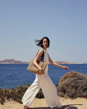 Composition : 100% raphia naturel (matière naturelle et durable). Les poignées sont en cuir de zébu tanné selon un procédé végétal.
