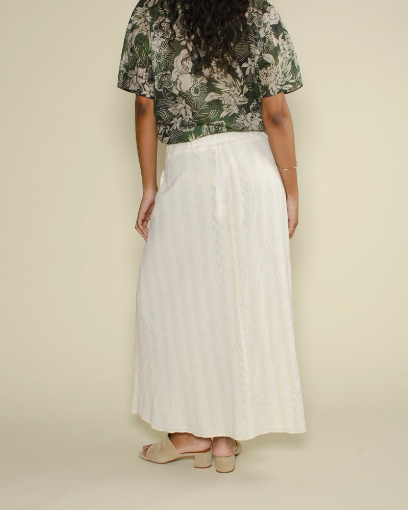 La jupe Jabo de la marque Diega. On adore cette jupe à la coupe évasé et fluide. Sa couleur doré lui donne un effet sophistiqué et élégant.Pour un look complet vous pouvez l'associer a la chemise assortie Tissa.