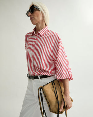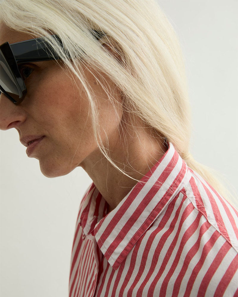 La chemise corail à rayures pour femme de chez Laurence Bras. Une coupe ample, un col classique, une fermeture par boutons, des poches plaquées sur la poitrine. On adore cette jolie chemise à rayures, on adore la poche visible à l'avant. Une pièce tendance et chic pour cette saison.