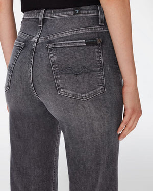Un jean flare de couleur denim brut de la marque Seven For All Mankind. On adore ce jean féminin et tendance !