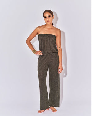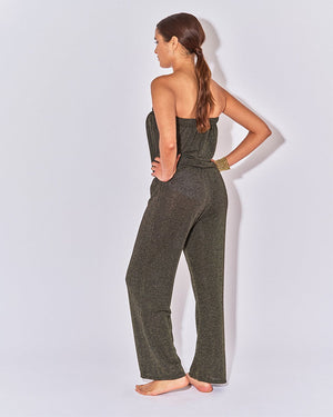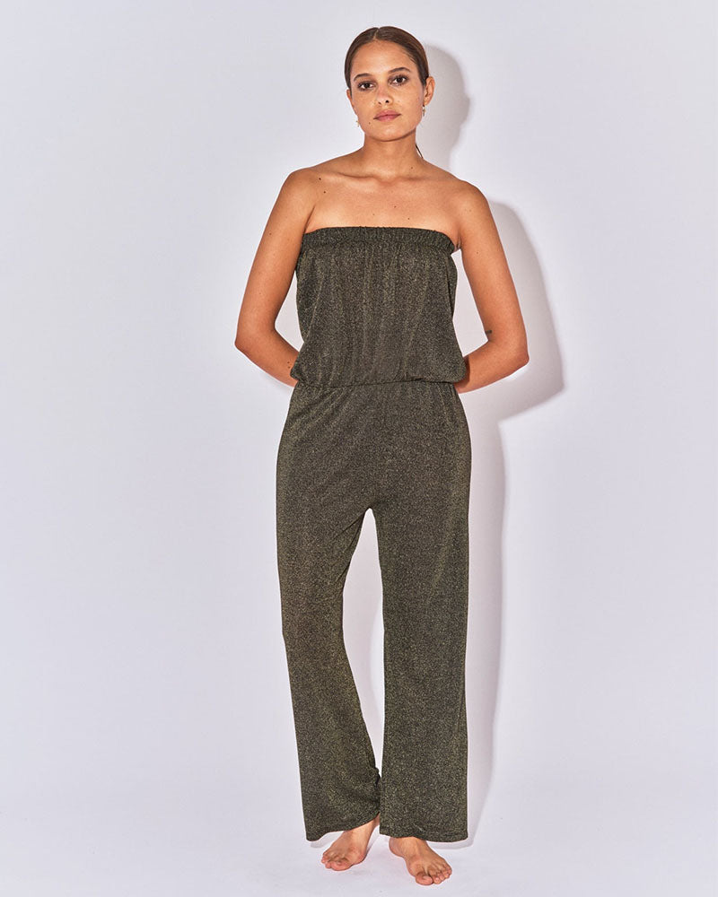 Une combinaison noire en lurex pour femme de la marque Beliza. On adore sa forme en bandeau parfaite pour l'été ! Retrouvez ici la combinaison en or.