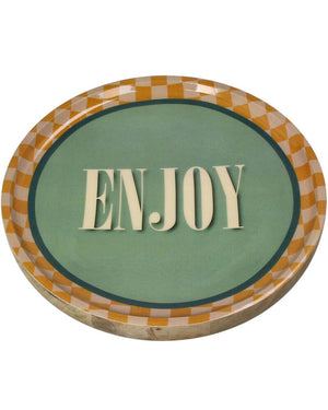 On adore cette plaque en bois de manguier avec le texte "Enjoy" pour son esprit positif et sa touche naturelle. Parfaite pour insuffler une ambiance joyeuse !