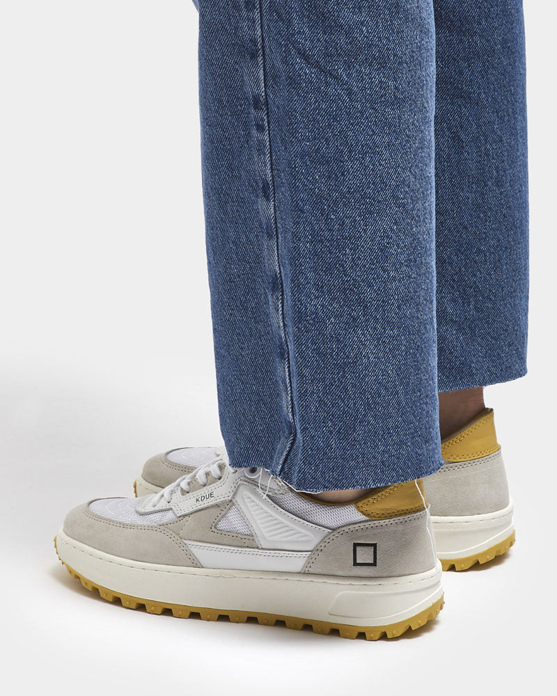 Les baskets de la marque Date pour femme sont facile à assortir au quotidien. Une paire de sneakers tendance pour ce printemps/été. Un modèle de baskets décontracté qui a une touche d'originalité avec l'empiècement jaune à l'arrière et la semelle crantée de la même couleur.