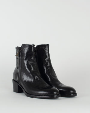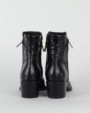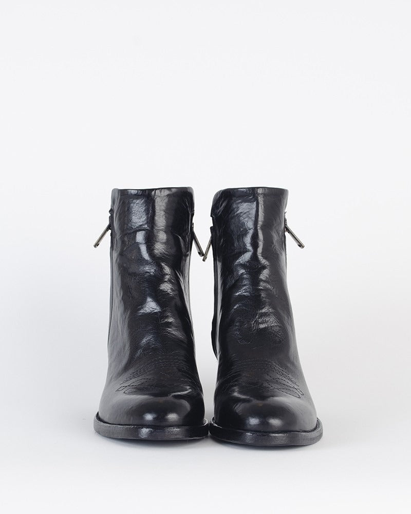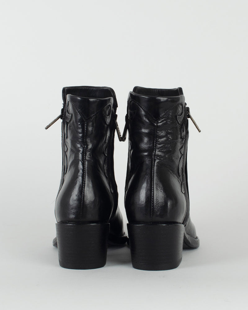 Une paire de tiags noire en cuir du créateur King Tartufoli. Vive le cuir italien et sa qualité ! Les surpiqûres sur le devant de la tiags la rende chic et moderne. Vous pourrez porter cette paire avec une paire de collants et une jupe ou même un jeans mom, pour un look rock et glamour.