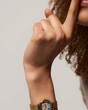 La montre Komono Money Penny Gold Noir allie élégance et modernité. Le cadran est fond bleu avec les chiffres rose clair à l'intérieur. Son cadran carré, et son bracelet doré apportent une touche vintage. Parfaite pour toutes les occasions, cette montre unique s'adapte à votre style. avec simplicité.