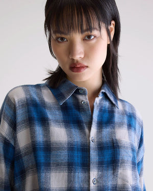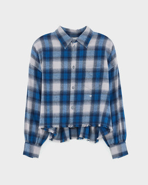 Coupe courte décontractée / Col chemise / Manches ballon avec épaules tombantes et poignets ajustés / Poche avant plaquée / Ourlet droit à bord brut