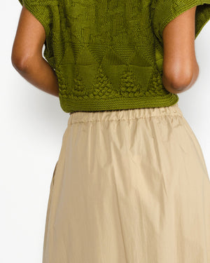 Une jupe beige pour femme de la marque Momoni. On adore cette jupe pour femme longue et ample avec ses coutures qui donne un coté mode !