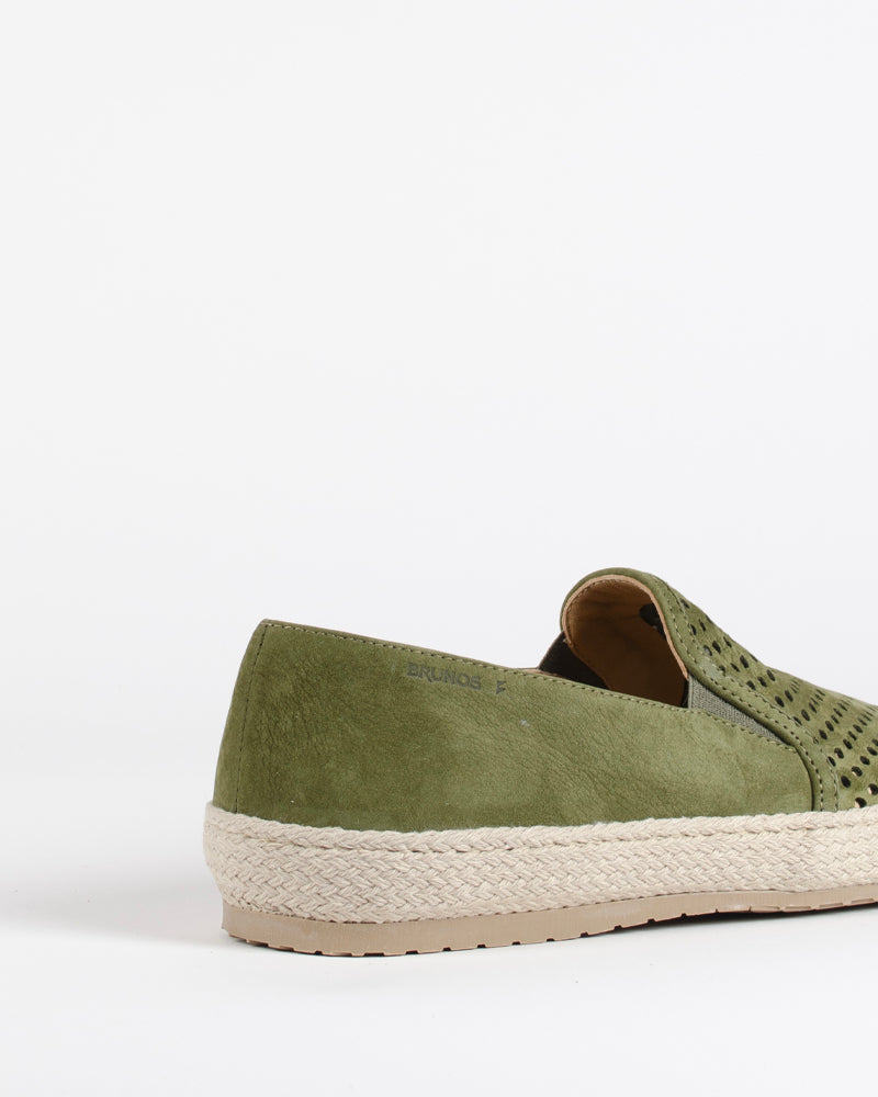 Mocassins vert en raphia et cuir suédé pour homme de la marque Bruno's