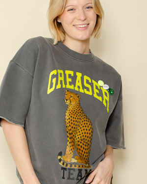 sweat manches courtes / coupe tendance et agréable à porter / coton épais / léopard / greaser team