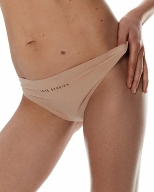 String de la marque Love Stories Coloris : Nude Composition : 75 % polyamide, 25 % élasthanne Voici un string sans couture de la marque Love Stories. Un string couleur peau orné du logo de la marque, qui assurera un maintient discret sous des vêtements ajustés ! Retrouvez tous les bas et culottes chez Pop !