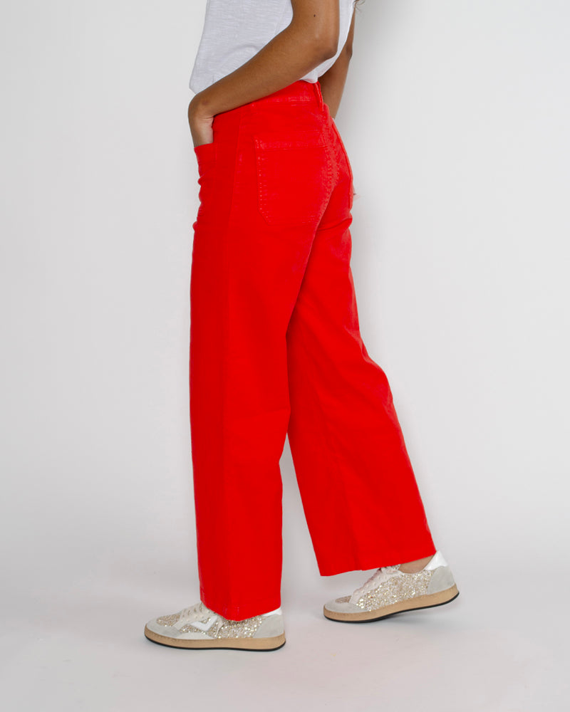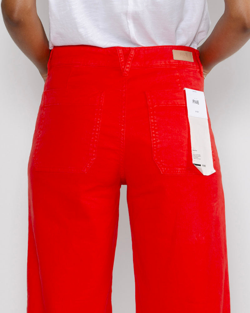 Pantalon coloré de la marque Five pour femme. Ce pantalon à coupe droite légèrement évasée est parfait pour cet été. Sa matière allie confort et qualité, et on adore ses poches plaquées qui ajoutent un côté à la fois mignon et élégant.