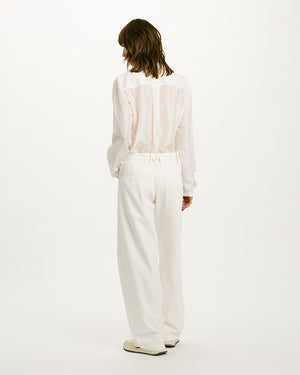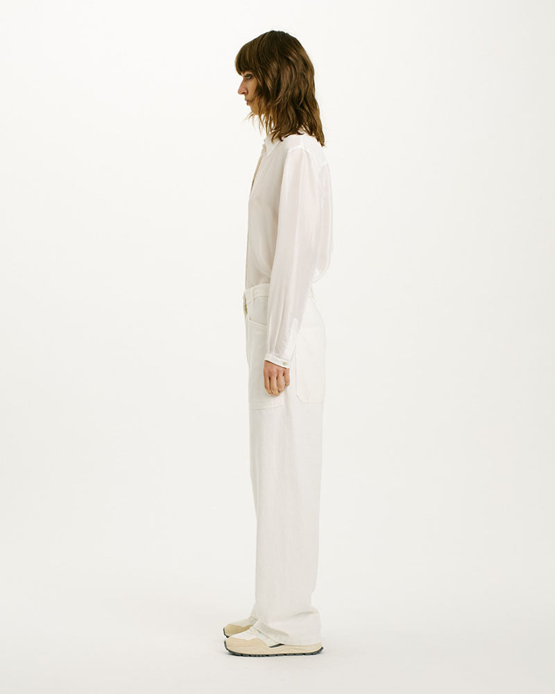 Un pantalon en denim blanc pour femme de la marque Momoni. Coup de coeur pour la coupe de ce pantalon en denim pour femme. Les poches à l'avant du jeans sont imposantes, ce qui donne un coté mode qu'on adore chez POp. Retrouvez la collection Momoni ici !