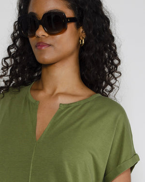 Notre mannequin Maeva mesure 1m72 et porte une taille M.