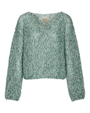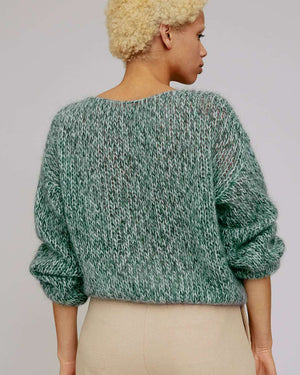 Un pull pour femme de la marque Humanoid. On craque pour la couleur verte de ce pull en tricot pour femme et son col V dans le dos. Ce pull Humanoid en laine de Mohair et de Mérinos est d'une douceur incomparable. Ce pull se porte parfaitement associé à ce pantalon Essentiel Antwerp pour femme.