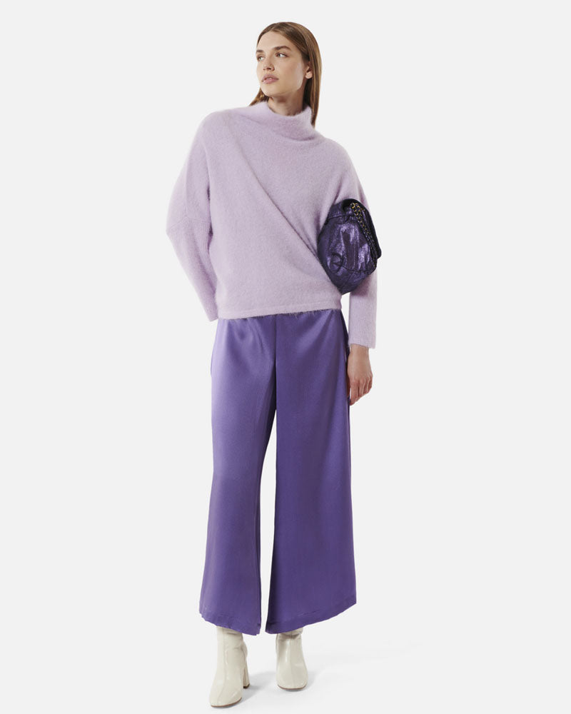 C'est le pull le plus chaud de la saison signé Karma Koma. Sa coupe est ample et oversize avec des manches 3/4. La maille est fluffy et surmonté d'un col cheminée. Facile à assortir sur une jupe longue.