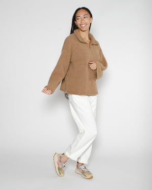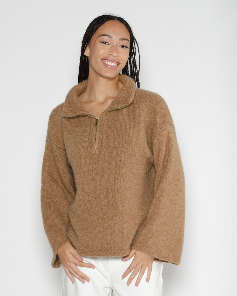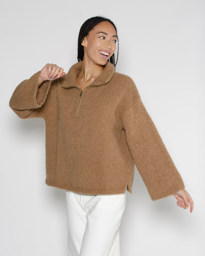 Pull pour femme de la marque Leon & Harper. Son col et son zip apportent de la structure à la pièce. Parfait pour cet automne, on l'imagine assorti à un jean droit et un trench beige ou bordeaux !