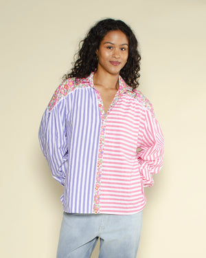 Blouse à rayure violette et rose pour femme de la marque Paolina