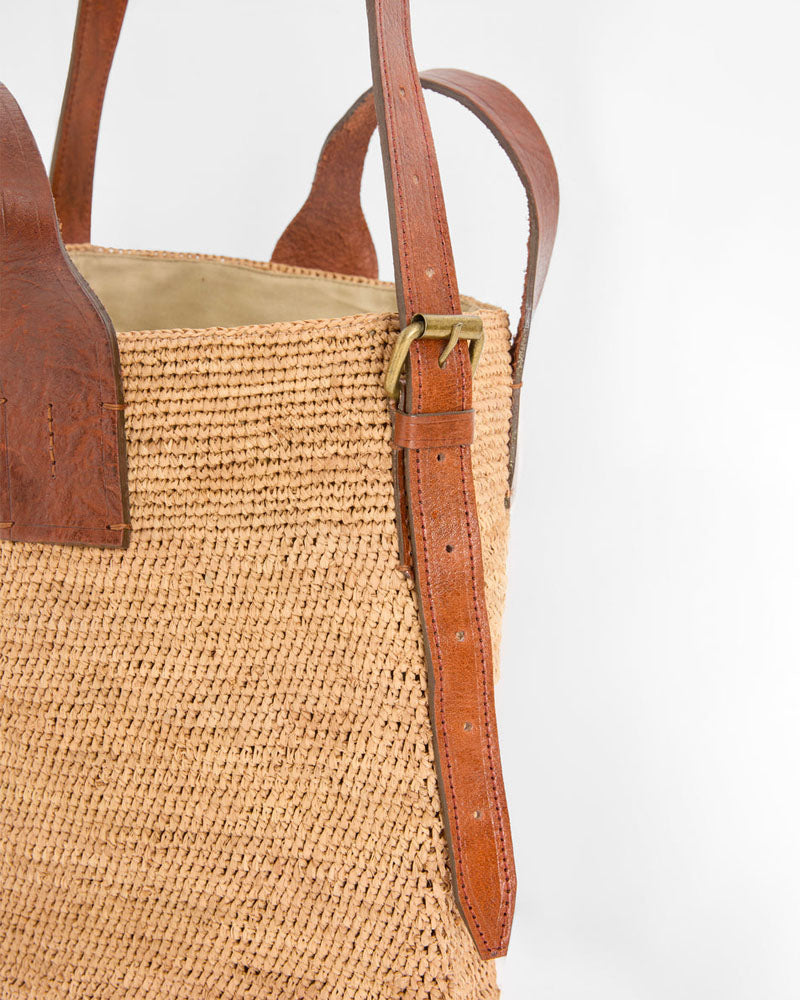 Composition: 100% en raphia naturel, ce sac doublé en coton bio. Les deux poignées sont en cuir de zébu tanné selon un procédé végétal.