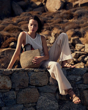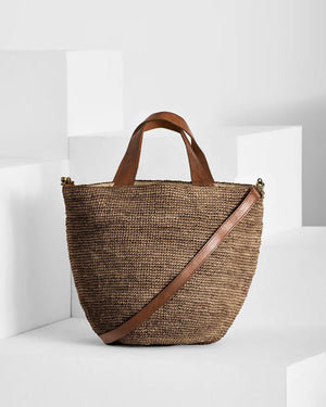 Composition: 100% raphia naturel (matière naturelle et durable). Les poignées sont en cuir de zébu tanné selon un procédé végétal.