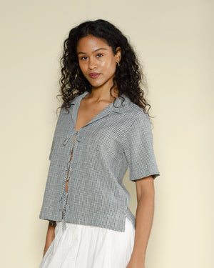Une chemise à manches courtes pour femme de la marque Nudie Jeans. Cette chemise sera parfaite pour vos looks casual de cet été ! On adore le style western de cette chemise manches courtes avec ces petits nœuds !