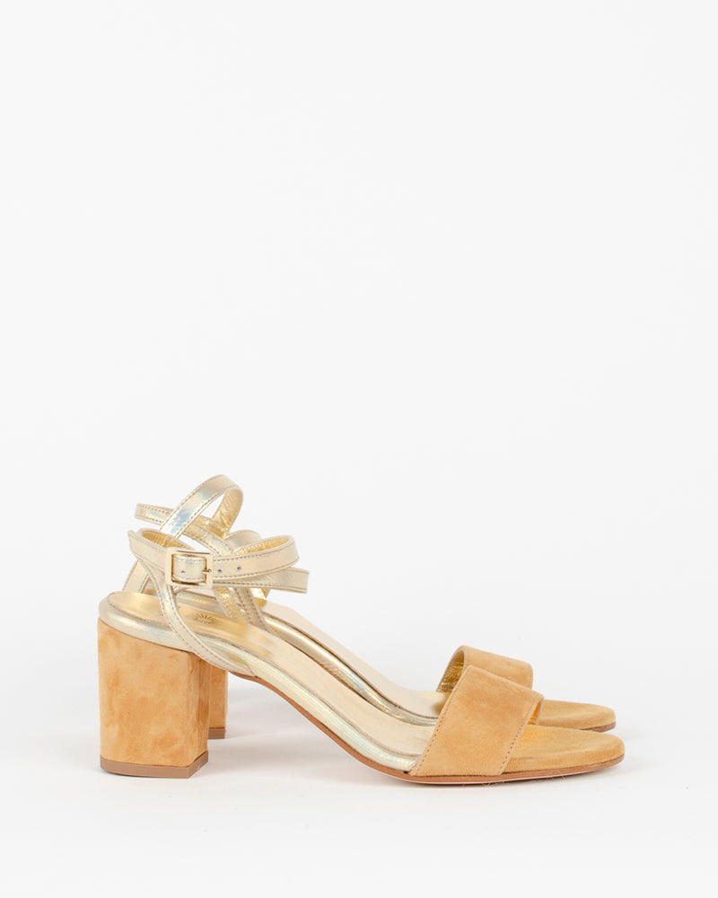 Avec ses sandales à talons Nimal, vous êtes élégantes pour tous vos événements ! En plus, ils sont confortables même avec le talon haut. Pour la couleur, n'hésitez plus, le camel c'est l'intemporel de votre dressing ! Avec la bride doré, la sandale vous assure un maintien à la cheville et on adore le look