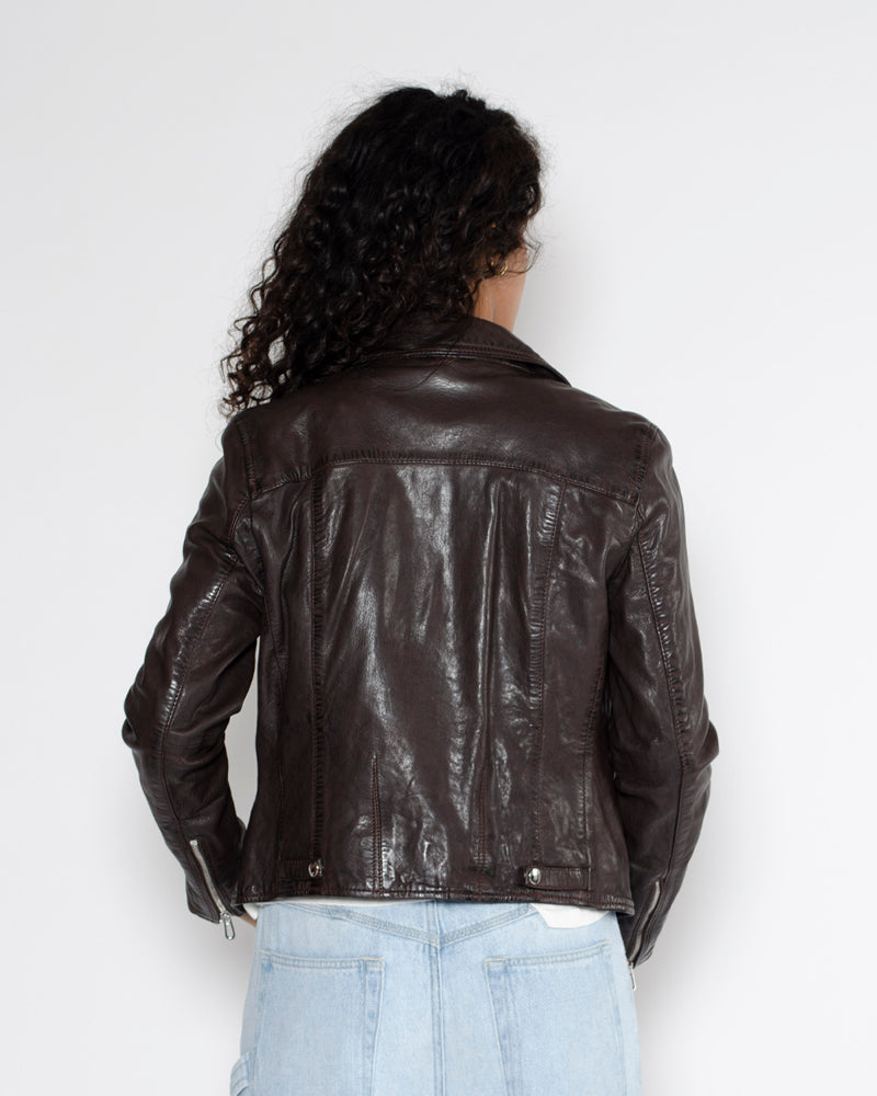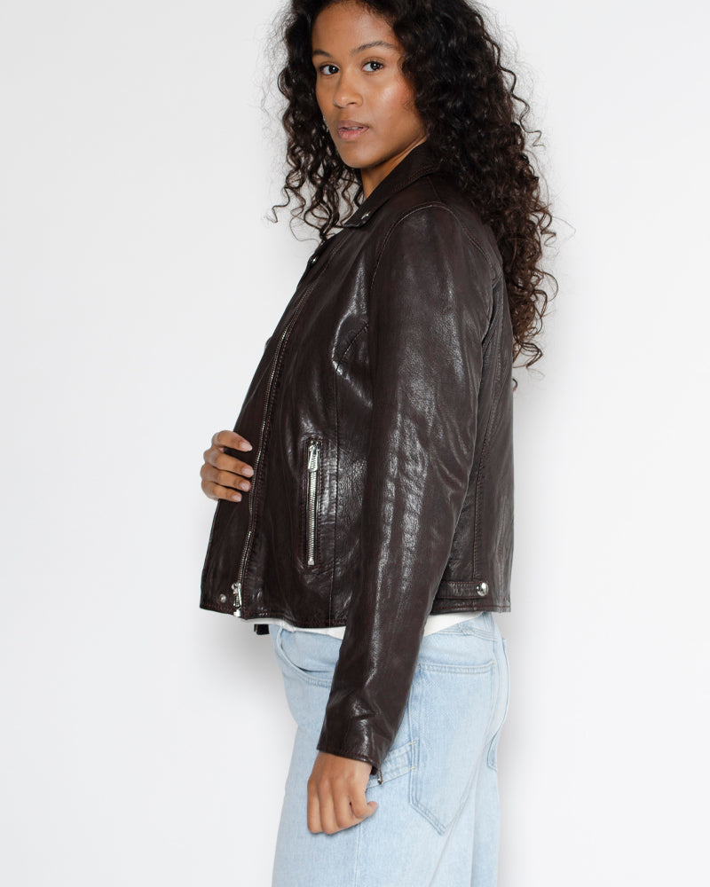 Composition : Cuir d'agneau, fin et souple, Col Perfecto, Fermeture asymétrique zippée, Bas de manches zippées, 3 poches extérieures zippées, 1 poche intérieure cachée taille smartphone, Doublure coton et manche polyester