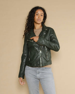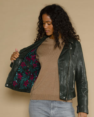 Le perfecto en cuir acqua de la marque Rose Garden vous attend pour la mi-saison ! C'est un basique à avoir dans votre garde robe. Il s'associe très facilement et apporte un effet rock et chic à vos tenues ! Retrouvez tous les blousons ici.