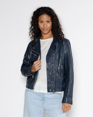Composition : Cuir d'agneau, fin et souple, Col Perfecto, Fermeture asymétrique zippée, Bas de manches zippées, 3 poches extérieures zippées, 1 poche intérieure cachée taille smartphone, Doublure coton et manche polyester