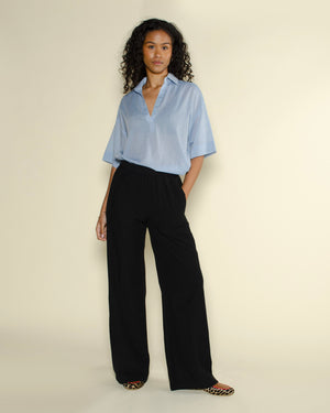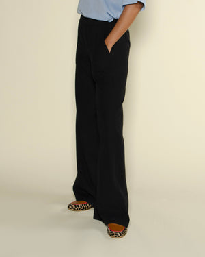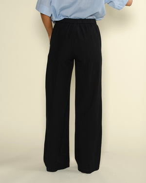 Le pantalon Perillo noir de la marque Diega. On adore ce pantalon ample à la coupe wide leg, cintré à la taille et évasé au niveau des jambes. On y retrouve des poches plaqués lui donnant une allure sophistiqué.