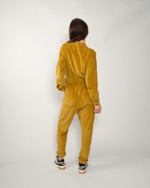 Combinaison longue de chez Hartford Coloris : Moutarde Composition: 100% coton La combinaison longue de chez Hartford est en velours côtelé. Doux et confortable, vous serez à l'aise dans vos looks du quotidien. Vous avez deux poches à l'avant, cela donne un côté décontracté. Retrouvez la même combinaison en kaki !