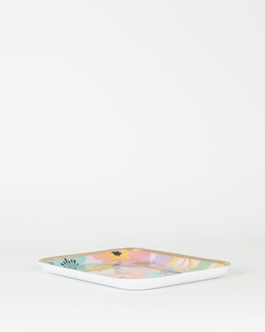Un plateau de forme rectangle avec des bords arrondis avec un design fleuri qui égayera votre intérieur. Ce joli plateau coloré sert comme vide poche ou pour poser vos bijoux.