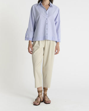 Chemise pour femme bleue de la marque Hana San. Une chemise à carreaux 100% coton pour femme parfaite pour cette saison. C'est un basique à avoir dans sa garde robe qui ira avec tout ! Le détail des manches ajoute un côté mode et tendance.