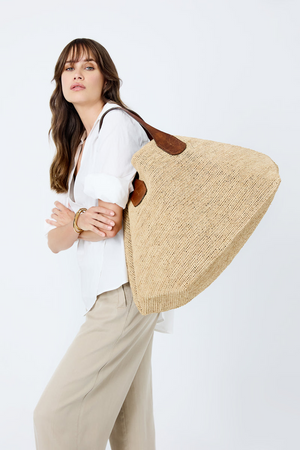 Composition: 100% raphia naturel (matière naturelle et durable). Les poignées sont en cuir de zébu tanné selon un procédé végétal.