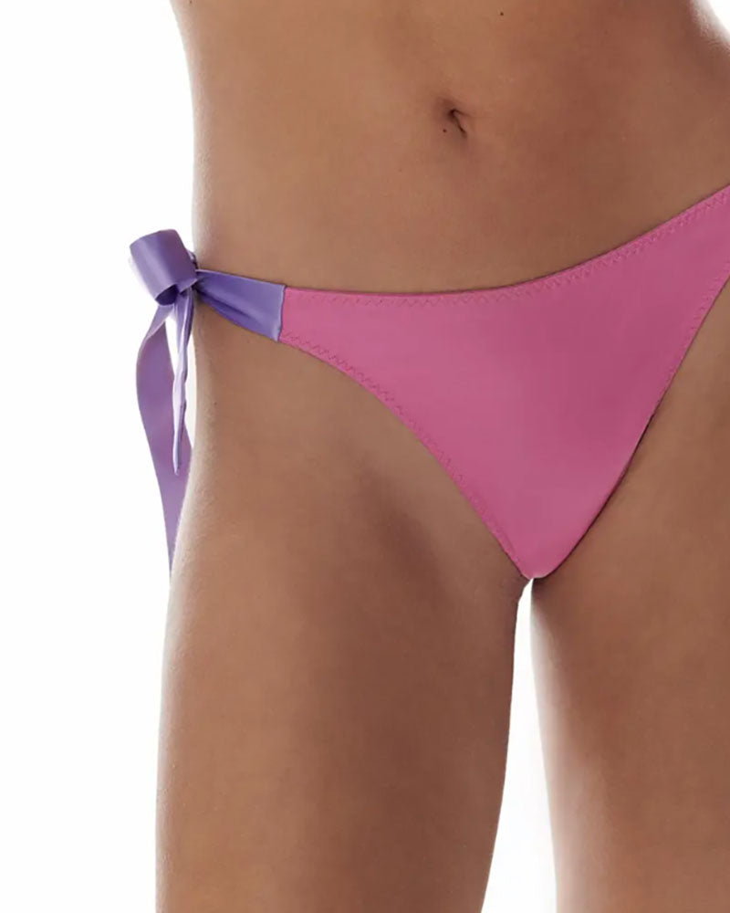 Un culotte style tanga de la marque Love Stories en satin doux avec une brillance nacrée. On a complètement craqué pour les nœuds qui ornent les côtés. Hyper mignon pour la Saint-Valentin!