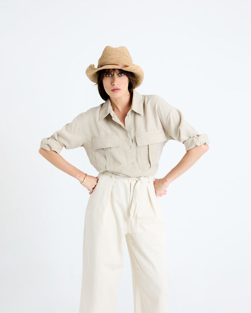Résistant, léger et pliable comme tous les chapeaux de notre collection, le Safari est orné d’une lanière en cuir dont le système de scratch breveté Ibeliv vous permet d’adapter la taille à votre tour de tête. Bords abaissés ou relevés, le chapeau Safari conserve la forme que vous lui donnez grâce à l’armature cachée à leur extrémité.