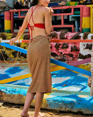 Découvrez notre jupe de bain rayé jaune et rouge, conçu pour allier style intemporel et confort absolu. Tissu fabriqué en Italie, chic et élégant aux rayures contrastées avec pointes de lurex.Avec ses rayures élégantes, sa coupe flatteuse et son tissu de qualité, il sublime toutes les silhouettes. Idéal pour une journée à la plage ou au bord de la piscine, cette jupe est votre allié mode de l'été.