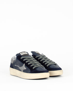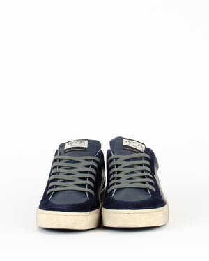 Coup de cœur pour les baskets signées Ama brand. Elles sont bleu foncé avec des lacets gris, et des détails gris métallisés. Les baskets pour homme allient style et confort.