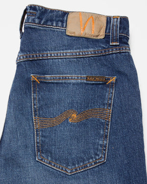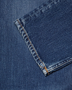 Jean slim / Coupe ajustée / Denim stretch texturé / Bleu foncé délavé / Effet usé authentique
