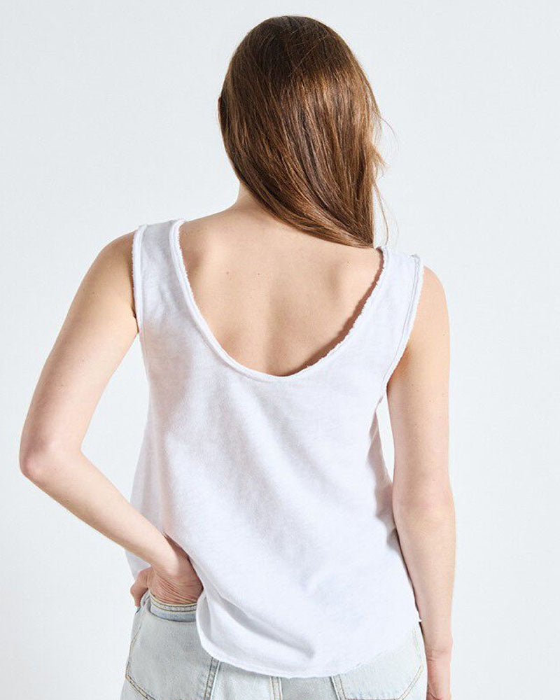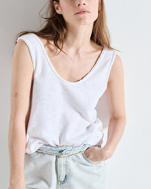 Débardeur sonoma American Vintage. Pièce incontournable de la collection, le débardeur Sonoma séduit par sa coupe trapèze et son coton épais au toucher doux. Confortable et décontracté, il se porte facilement au quotidien. Sans manches, col U et finitions brutes pour un style authentique. Taille normalement. manches. Retrouvez la collection AMV ici !