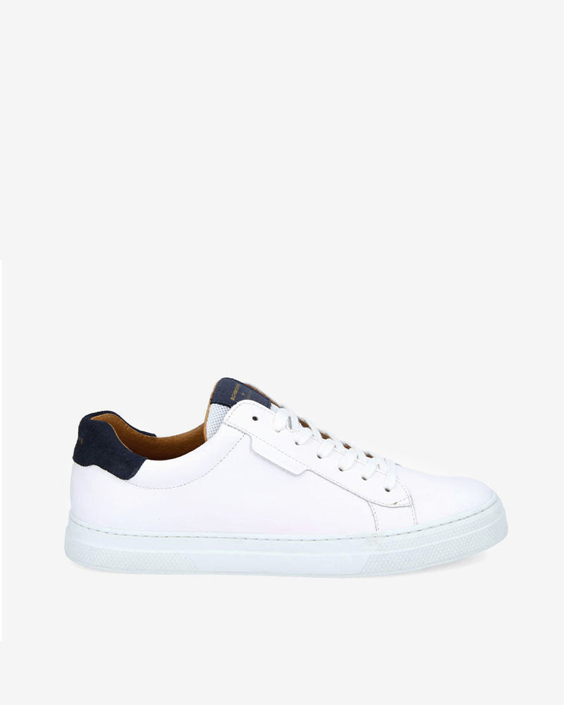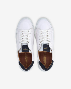 Baskets basses en cuir blanc avec l'arrière de la chaussure en cuir suédé bleu marine et semelle en caoutchouc. On adore la touche de bleu marine du cuir suédé qui apporte de la couleur à cette paire de baskets intemporelles de chez Schmoove. Un intemporel passe-partout pour un look soigné sans prise de tête !