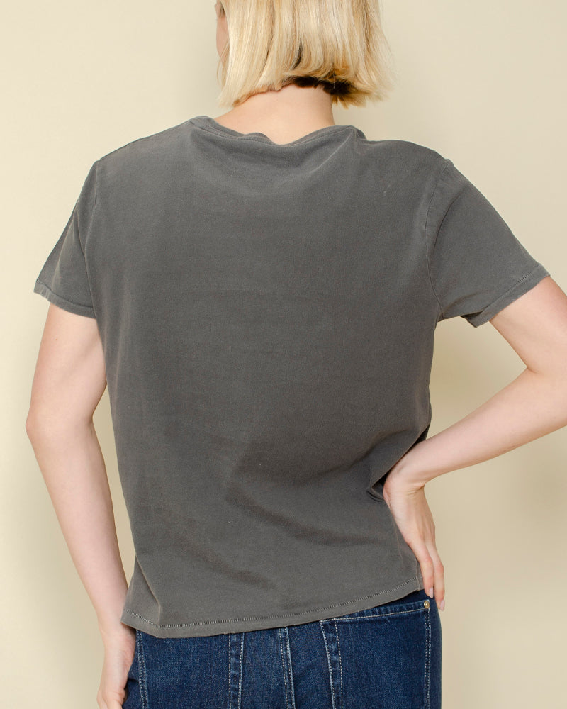 Col rond / forme ample / smiley jaune / badges signature de la marque